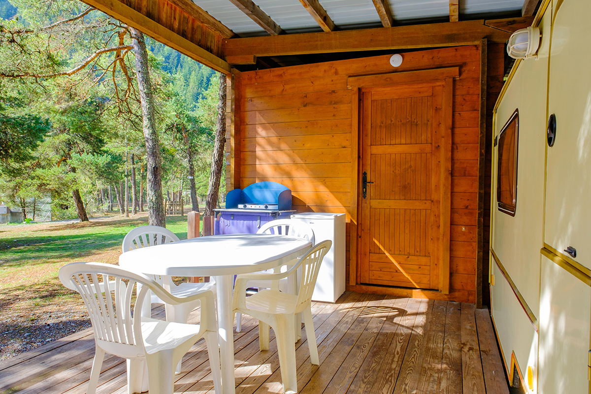 Hutten, stacaravans en caravans zijn gelegen in het hart van een bos van sparren, lariksen en mediterrane pijnbomen. Geïnstalleerd op grote standplaatsen zijn zij allen uitgerust met een ruim zomers ingericht terras.