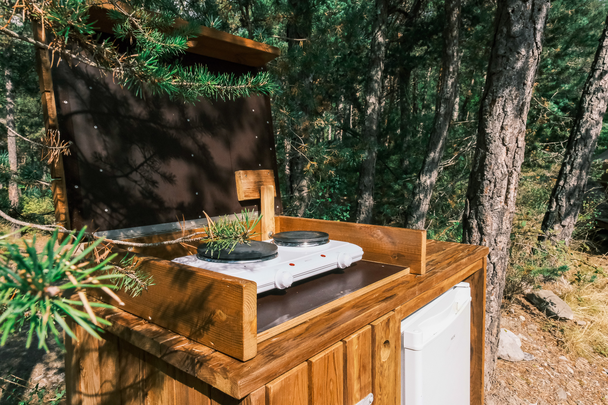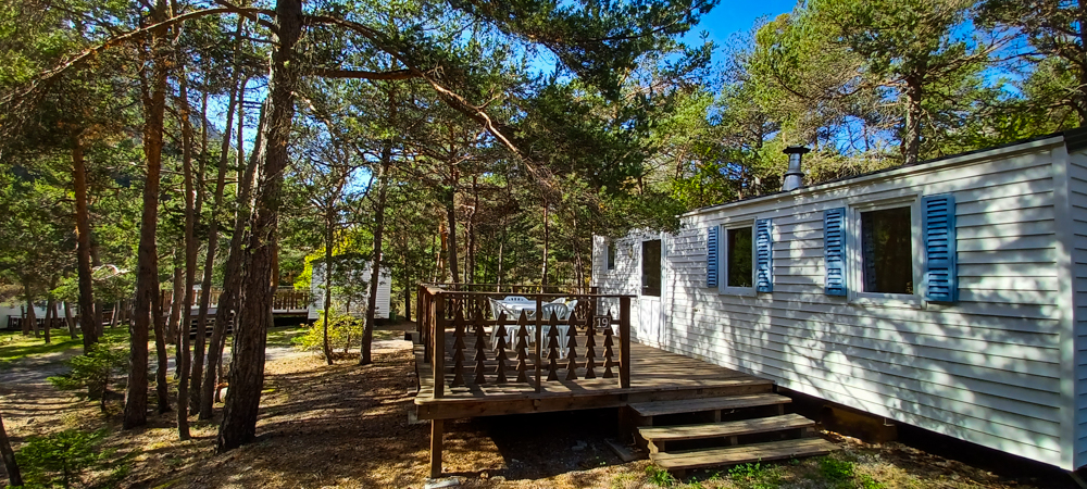 Hutten, stacaravans en caravans zijn gelegen in het hart van een bos van sparren, lariksen en mediterrane pijnbomen. Geïnstalleerd op grote standplaatsen zijn zij allen uitgerust met een ruim zomers ingericht terras.